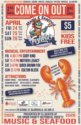 Hear from local musicians, buy from local vendors, and eat some yummy seafood! There will be bounce houses, face painting, arts & crafts, and overall fun for everybody! The event will be at the Historic Mock House just south off the downtown square!