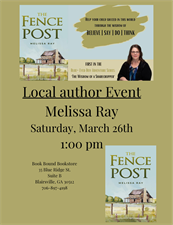 Book Bound Bookstore welcomes Melissa Ray, local author of The Fence Post. This is her first book in her Blue-Eyed Boy Adventure series for kids teaching children about making the right choices. Join us from 1-3 Saturday!