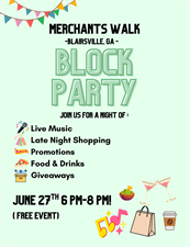 Join us for a summer Saturday night out at the Merchants Walk Block Party in Blairsville!