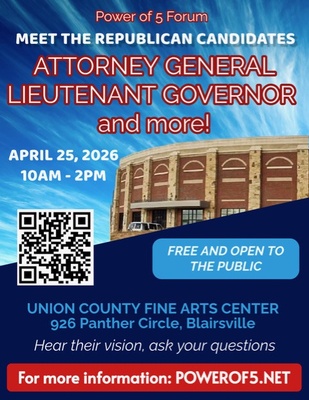 A forum for you to meet our candidates for the May 19th mid-terms. This is an event sponsored by the Power of Five and includes 5 counties along Hwy 515 - Towns, Union, Fannin, Gilmer & Pickens.